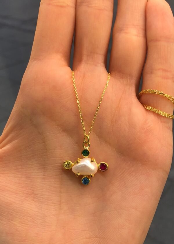 Özel Tasarım Gerçek İnci ve Doğal Taşlı Altın Kaplama Gümüş Kolye