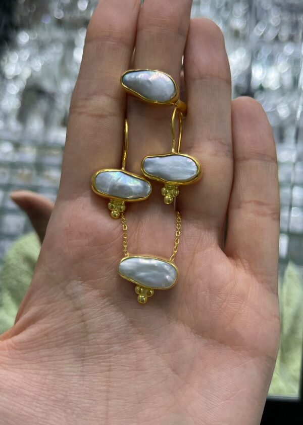 Özel Tasarım Gerçek İnci ve Doğal Taş Detaylı Altın Kaplama Gümüş Küpe