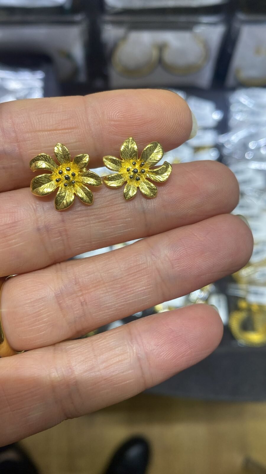 Çiçek Desenli Altın Kaplama Gümüş Küpe