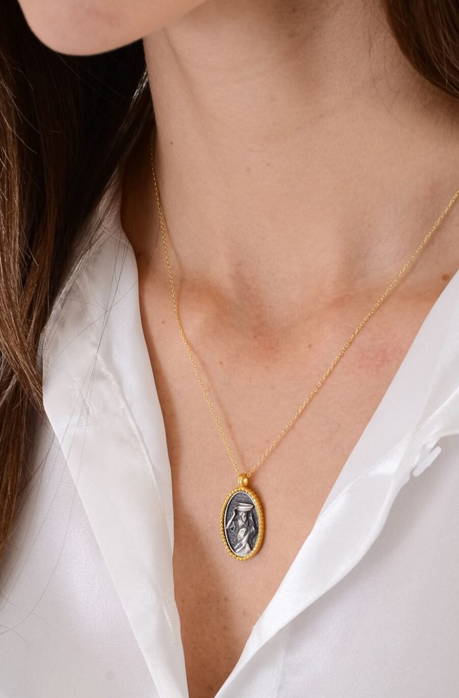 Özel Tasarım Kadın Figürlü Altın Kaplama Gümüş Kolye